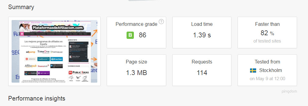 Puedes hacer un test de velocidad gratuito en Pingdom Tools desde aquí. Te recomiendo que utilices el servidor más cercano (Suecia):