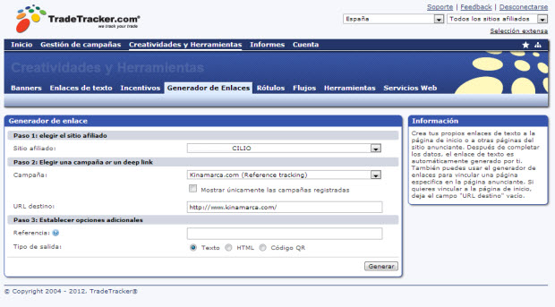 Un ejemplo de plataforma que utiliza enlaces profundos es Tradetracker, aunque aquí se denomina «Generador de enlaces»: